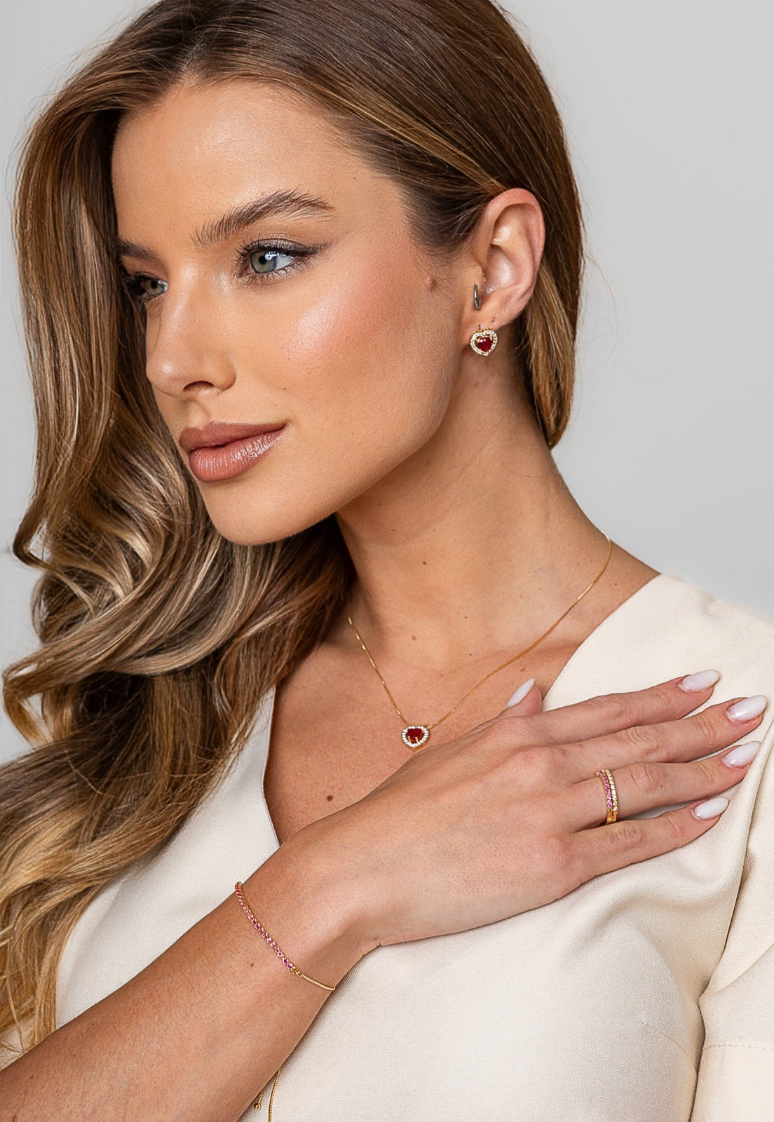 O design em coração traduz amor e feminilidade, tornando o conjunto ideal tanto para ocasiões especiais quanto para valorizar os looks do dia a dia.