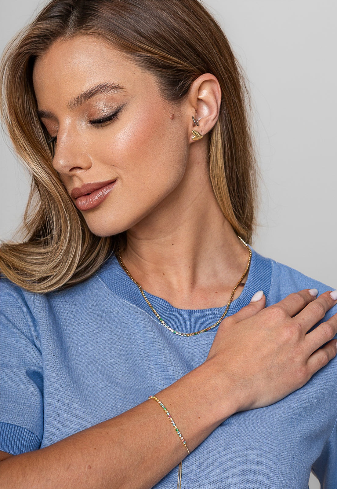 Este modelo é banhado em ouro 18k, proporcionando um visual elegante que se destaca em qualquer ocasião.