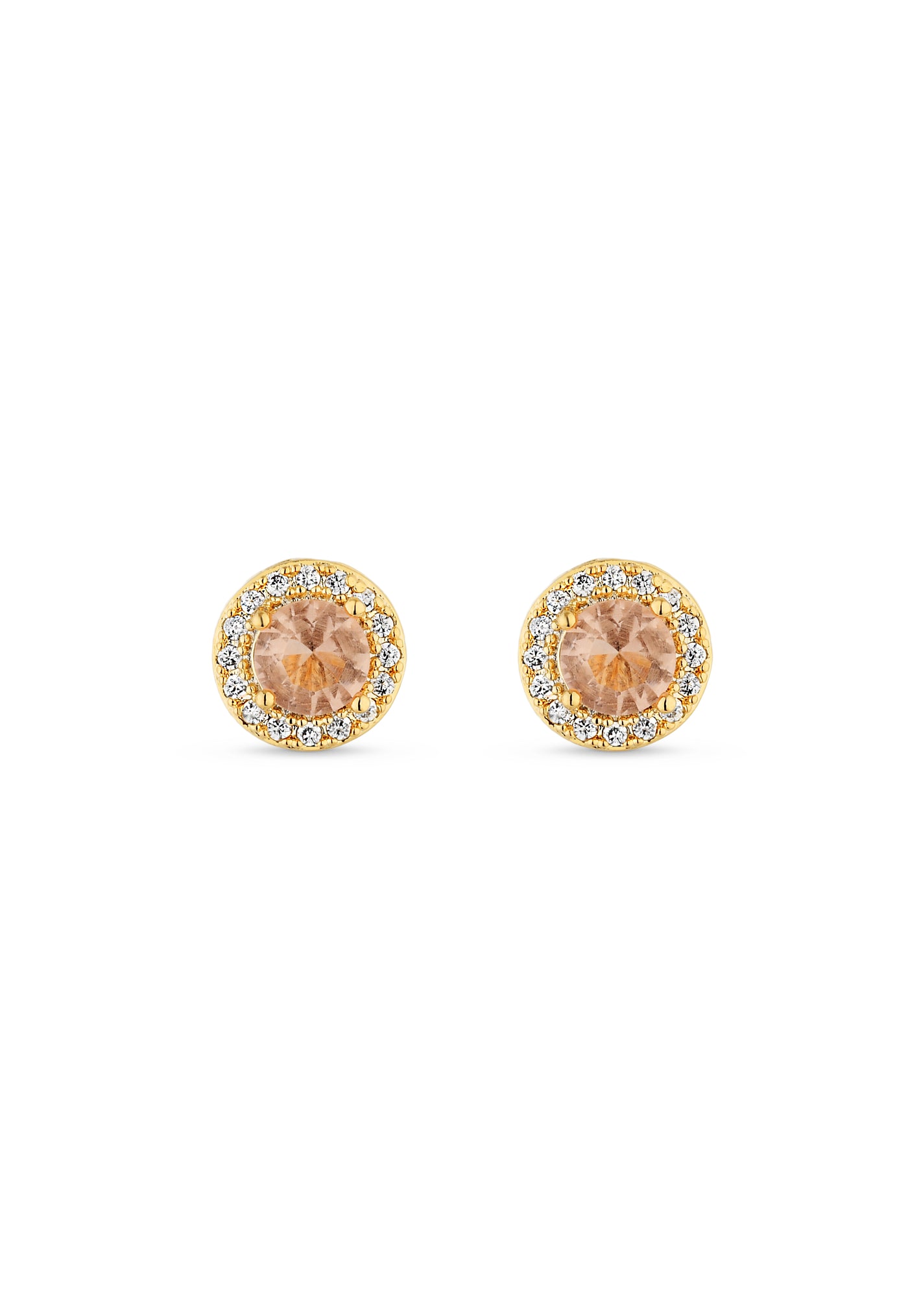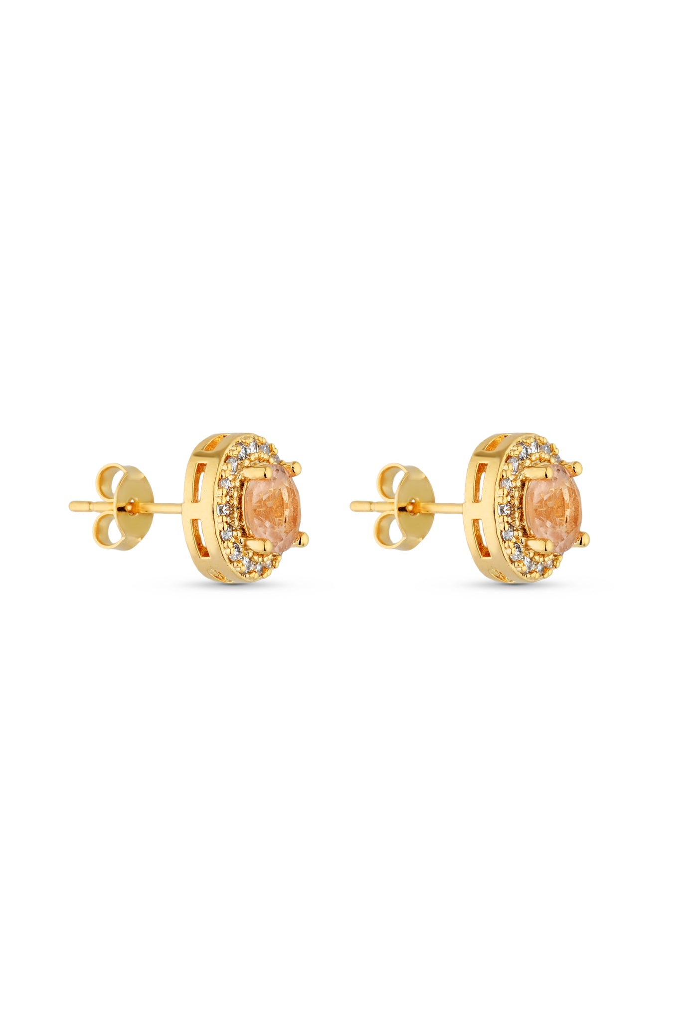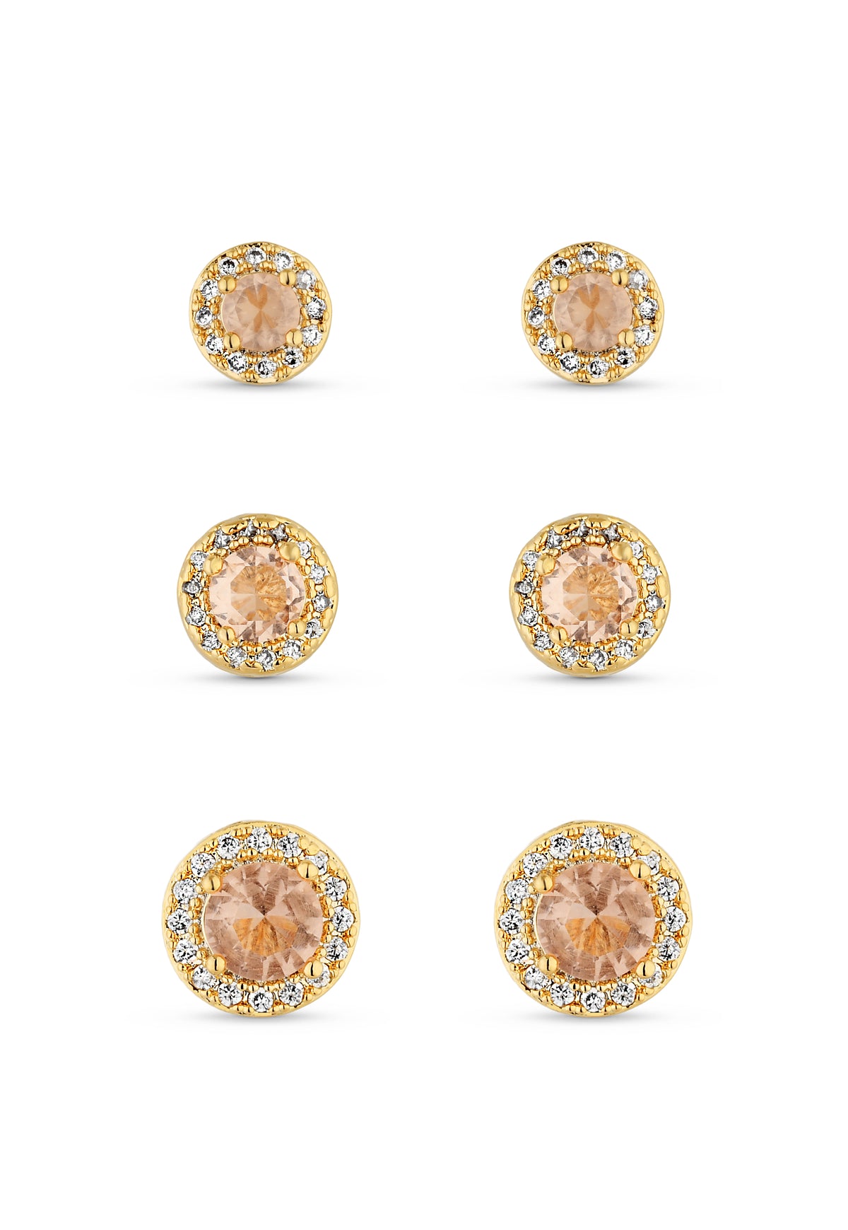 O Trio de Brincos Semijoia em formato redondo com pedra morganita e micro zircônias é a escolha perfeita para quem busca delicadeza e brilho em um único acessório.
