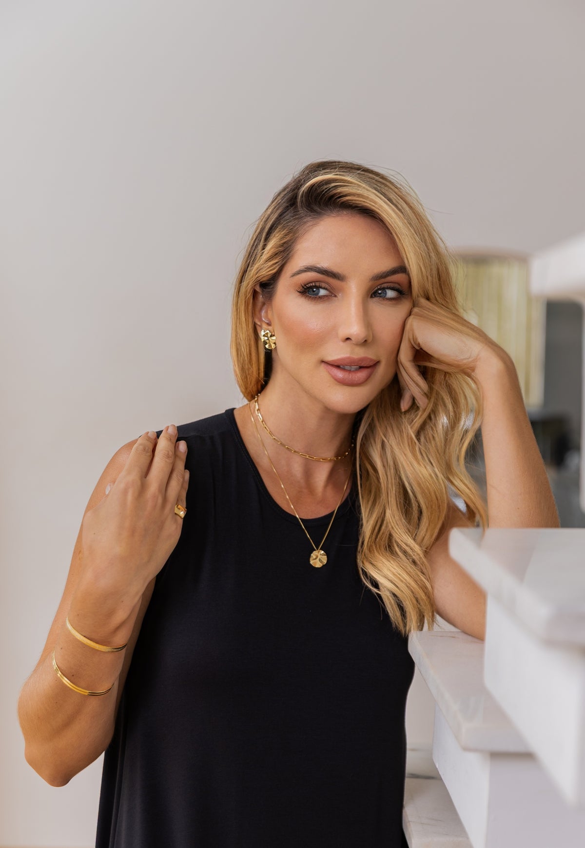 Conjunto Semijoia Colar E Brinco Orgânico Redondo Banhado A Ouro 18k